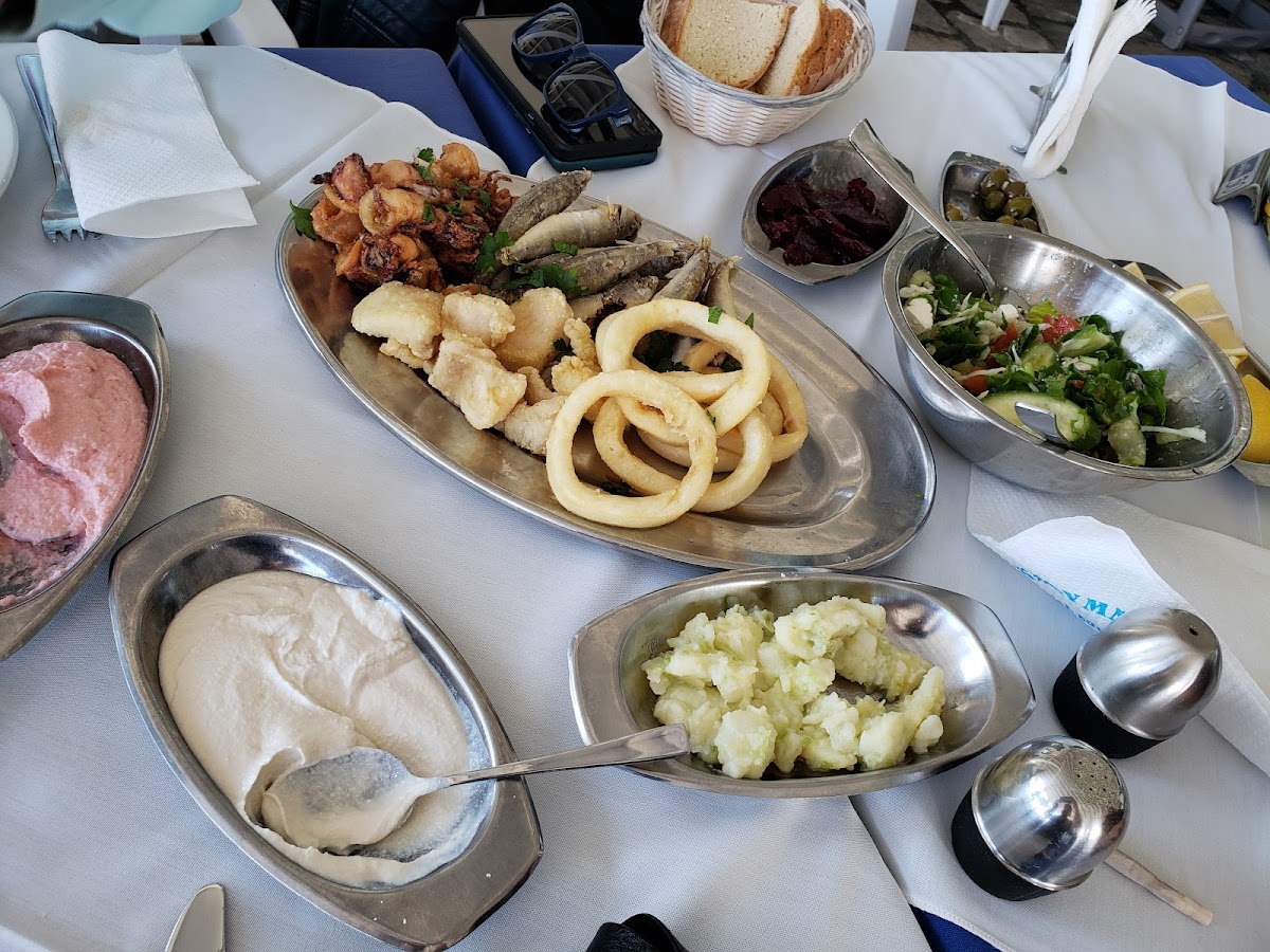 Kalymnos Fish Tavern is renowned for its signature dishes that are a true representation of Cyprus' rich seafood tradition. Among the standout options, the Grilled Octopus is a crowd favorite, perfectly cooked to bring out its natural flavors with a smoky, charred finish. For those who want to indulge in a variety of tastes, the Fish Meze is an ideal choice. A delightful spread of local seafood specialties, it includes a mix of grilled fish, dips, and appetizers that offer a true taste of the Mediterranean.